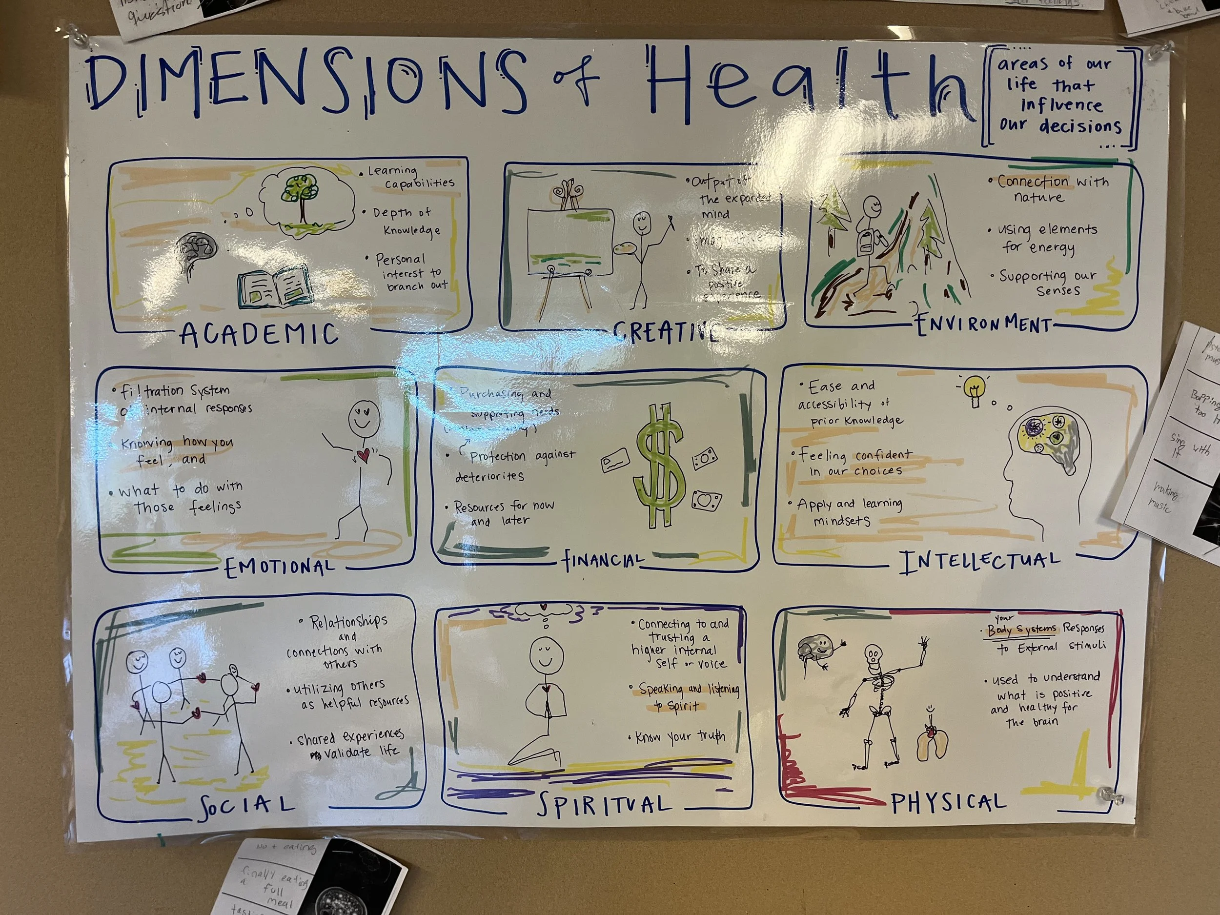 Example Practice: “I need to get morning sunlight to support my emotional and physical health.” “I need to call my grandma to improve my social health.” And even “I need to go to the music festival because I need to care for my creative and spiritual health.”